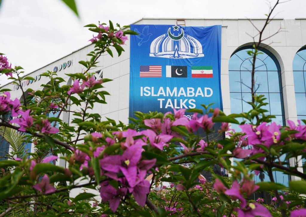 这是4月11日在巴基斯坦伊斯兰堡拍摄的美伊谈判新闻中心外景。新华社发(王申摄)