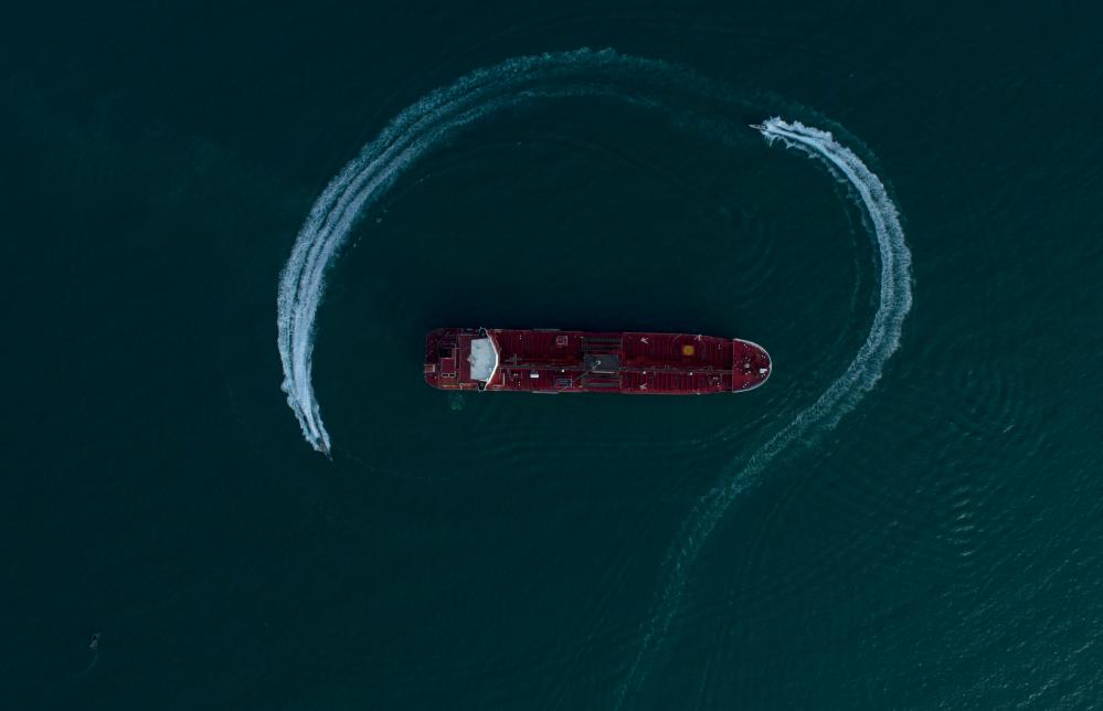 2019年7月21日,在伊朗霍尔木兹海峡附近,伊朗伊斯兰革命卫队的船只在英国油轮“史丹纳帝国”号周围巡逻。7月19日,伊朗伊斯兰革命卫队以涉嫌违反国际海事法规为由,扣押了“史丹纳帝国”号。9月27日,“史丹纳帝国”号获释。新华社/伊朗学生通讯社